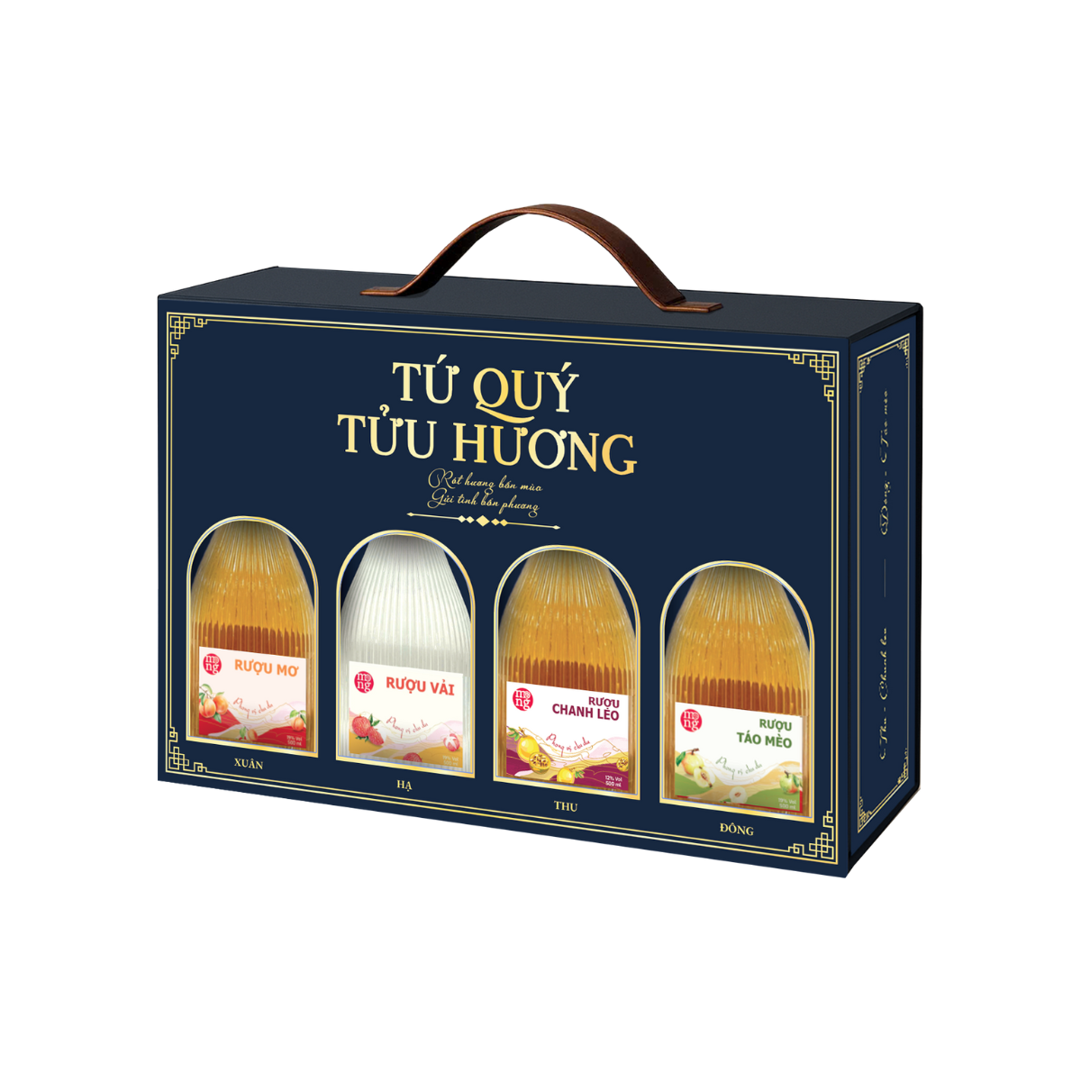 Hộp rượu Tứ Quý Tử Hương gói trọn hương vị của bốn mùa trong một hộp rượu - một hành trình thưởng thức đầy thi vị, đưa vị giác chạm vào nhịp chuyển mình của đất trời.